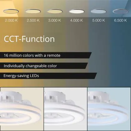 | Nome del fabbricante | Ceiling Lamp White + Fan (Dm 415mm) LED 26W (3100lm, 2700K-6500K, CCT, Dimmable, ICRGB, RC, Timer, | |