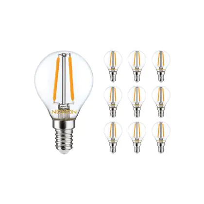 Confezione Multipack 10x Noxion Lucent Lustre LED E14 Sferica Filamento Chiara 2.5W 250lm - 822-827 Dim To Warm | Dimmerabile - Sostitutiva 25W
