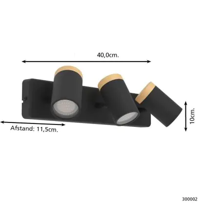 Eglo Luce da soffitto Consuma Nero, Marrone | Adatto per 3x GU10