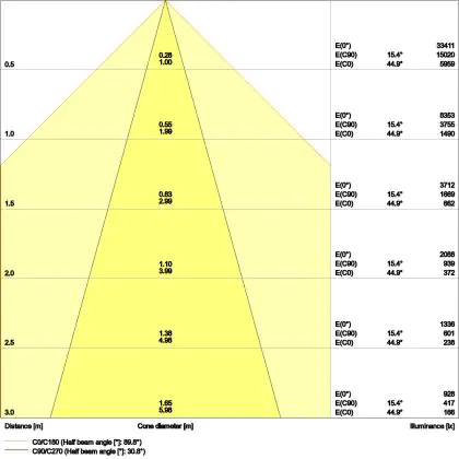 Il codice colore è una combinazione di resa cromatica (CRI) e colore della luce (Kelvin). La prima cifra indica la resa cromatica (1 = resa del colore molto bassa, 9 = massima resa del colore), mentre la seconda e la terza si riferiscono al colore della luce. Esempio: il codice colore 830 indica una buona resa cromatica (8) e luce bianca calda (3000K). |