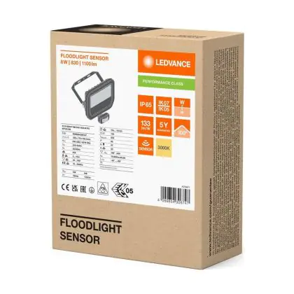 Descrizione Ledvance Proiettore LED Aluminium Nero 8W 1100lm 100D - 830 Luce Calda - | IP65 - Sensore Di Movimento E Luce - Simmetrico