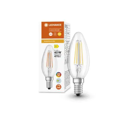 Descrizione Ledvance Superior Classic LED E14 Candela Filamento Chiara 3.4W 470lm - 927 Bianco Molto Caldo | Dimmerabile - Miglior resa cromatica