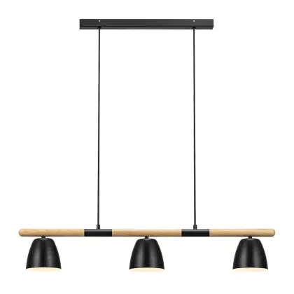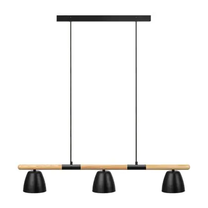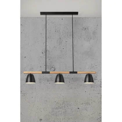 Nordlux Theo 3-Rail Luce Pendente Metallo e Legna Nero | Adatto per 3x GU10