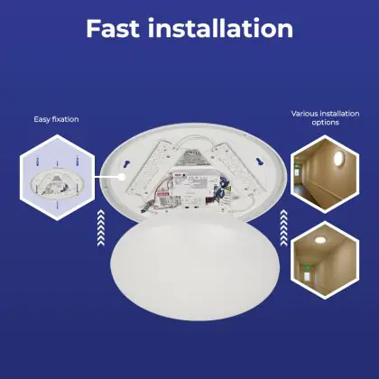 Prima di sostituire un vecchio apparecchio di illuminazione con uno nuovo è sempre consigliabile controllare le dimensioni. Installare questa plafoniera LED è molto facile: basta leggere attentamente le istruzioni e utilizzare il materiale di installazione fornito (viti, tasselli, ecc.). Se hai dubbi sull’installazione consulta un installatore certificato. Per questa lampada offriamo una garanzia di 5 anni