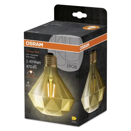 La Osram Vintage 1906 LED E27 Pera Filamento Oro 4.5W 420lm - 825 Bianco Molto Caldo | Sostitutiva 40W è la perfetta sostituzione per la tua lampada convenzionale 40W con attacco E27 grazie alla sua tecnologia LED. Passare a LED ti offrirà tanti vantaggi!