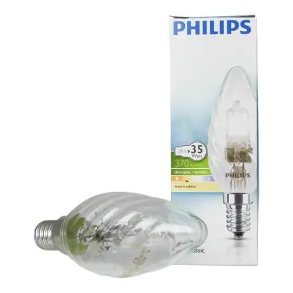 La Philips EcoClassic 28W E14 230V BW35 CL é una lampadina alogena a forma di cadela che presenta un vetro chiaro dotato di un design molto raffinato che consente applicazioni nelle quali la lampadina rimane a vista. La base a vite E14 e la tensione di 230V consentono un'installazione semplicissima grazie all'assenza di un trasformatore e dalla semplicità di inserimento delal lamapdina. La vita utile di questo modello é di 2.000 ore effettive.
