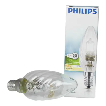 La Philips EcoClassic 42W E14 230V BW35 CL é una lmapadina alogena che offe una luce di ottima qualità, alla presenza di un filtro UV che previene lo scolorirsi degli oggetti esposti alla luce, una resa dei colori perfetta pari a 100Ra ed una colore bianco caldo che rende il vostro ambiente davvero accogliente. Per questi motivi, questa lampadina é particolarmente adatta ad utilizzi all'interno di esercizi commerciali, ristoranti e hotel. Grazie al suo design ricercato, é possibile utilizzare la Philips EcoClassic 42W E14 230V BW35 CL anche in applicazioni in cui la lampadina rimane a vista.