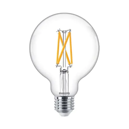 La Philips MASTER Value LED Globe E27 93mm Filamento Chiara 5.9W 806lm - 922-927 Bianco Molto Caldo | Miglior Resa Cromatica - Dimmerabile - Sostitutiva 60W è la perfetta sostituzione per la tua lampada convenzionale 60W con attacco E27 grazie alla sua tecnologia LED. Passare a LED ti offrirà tanti vantaggi!