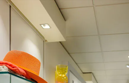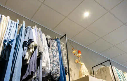 • Nel negozio sono stati utilizzati solo apparecchi di colore bianco, per creare un soffitto tranquillo. In questo modo si garantisce ai visitatori un'immediata percezione dell'assortimento (nessuna distrazione).