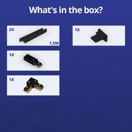 | Nome del fabbricante | Complete L shaped 1-Phase Track Set Black – 1,5 x 1,5 meter incl. End Cap, Power Connector and L -C | |